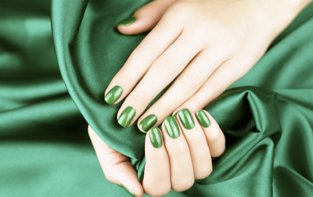 Цей глибокий зелений особливо актуальний для манікюру з осінніми прикрасами: камені, текстура, металеві акценти. Смарагдовий не надто яскравий, але завжди притягує увагу. Стає фаворитом для холодної пори — як альтернатива звичному чорному чи бордо.