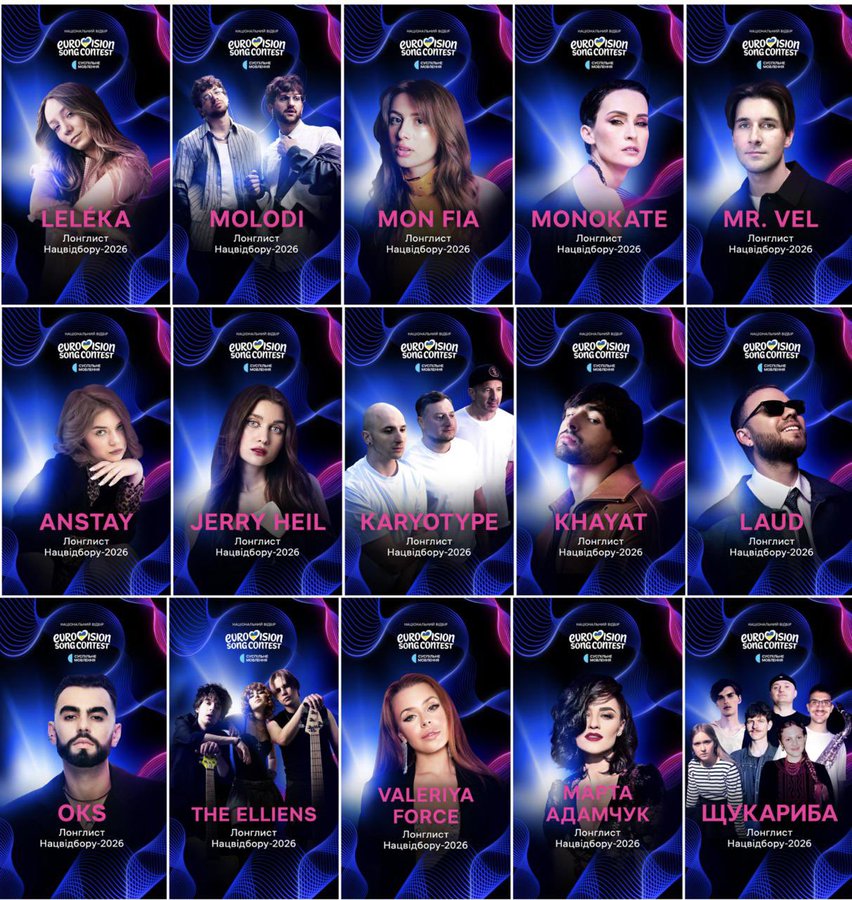 Суспільне та музична продюсерка Нацвідбору Джамала оголосили довгий список учасників, які продовжують боротьбу за право представити Україну на «Євробаченні-2026» у Відні. До лонгліста увійшли 15 артистів — серед них і добре знайомі фанатам імені, і нові обличчя.