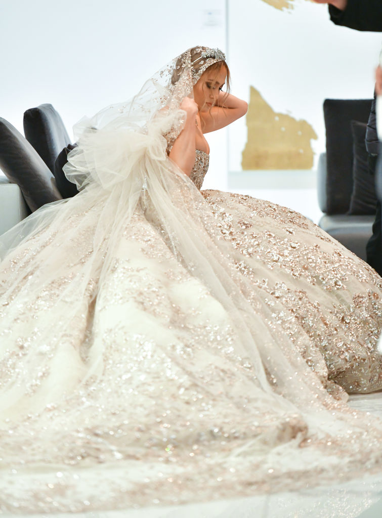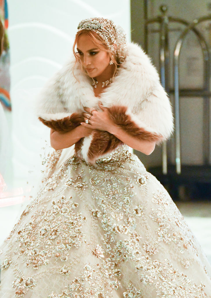 Дженнифер Лопес в преддверии свадьбы с Алексом Родригесом примеряла умопомрачительное свадебное платье от Zuhair Murad на съемки романтической комедии “Женись на мне” (Marry Me).