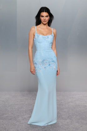 Теяна, яка цього року стала справжньою іконою стилю, обрала складний чорно-білий образ від Маттьє Блазі. Сукня, повністю виготовлена з пір’я та оздоблена скляними перлинами, супроводжувалася діамантовим намистом Tiffany & Co вагою понад 18 карат.