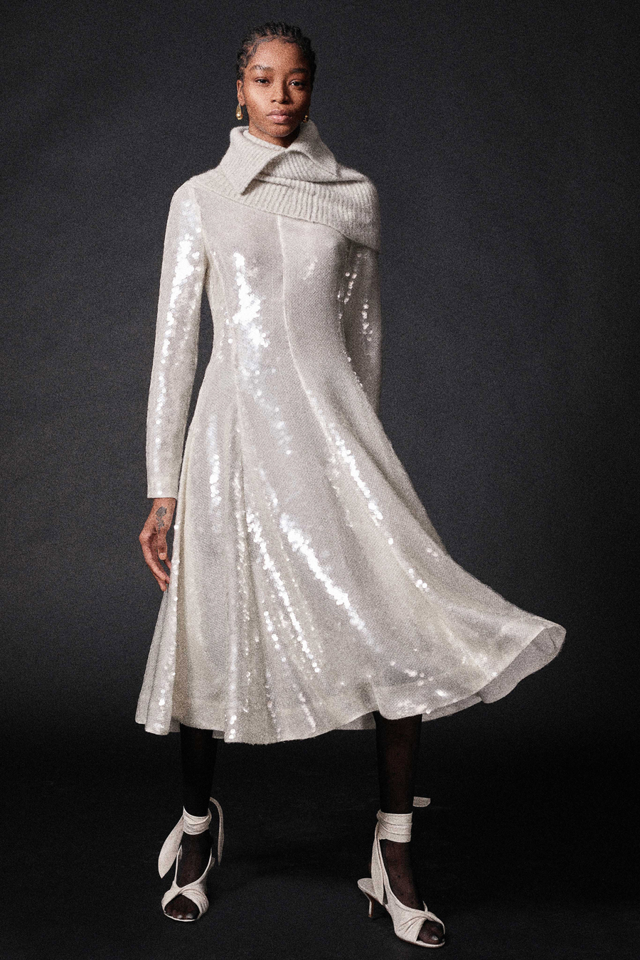 Они хороши со всех точек зрения: и создают легкое летнее настроение, и освещают пасмурные дни, и красиво выглядят в снежную погоду. Такой чистый и светлый образ поможет превратиться в Снежную королеву в новогоднюю ночь.