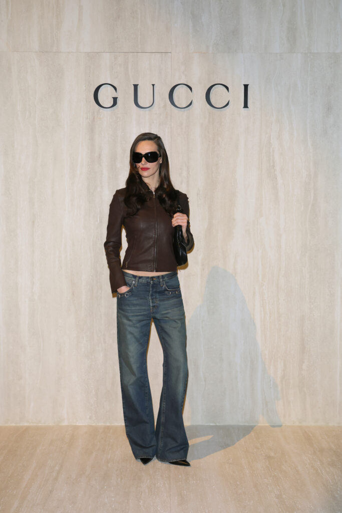 Девон Лі Карлсон стала абсолютним уособленням естетики «Gucci Girl». Її вибір — це повернення до епохи 90-х: ідеально гладкий, сяючий «блоу-аут» (об’ємна укладка) у поєднанні з виразним чорним олівцем для очей. Справжній італійський гламур без зайвих зусиль.