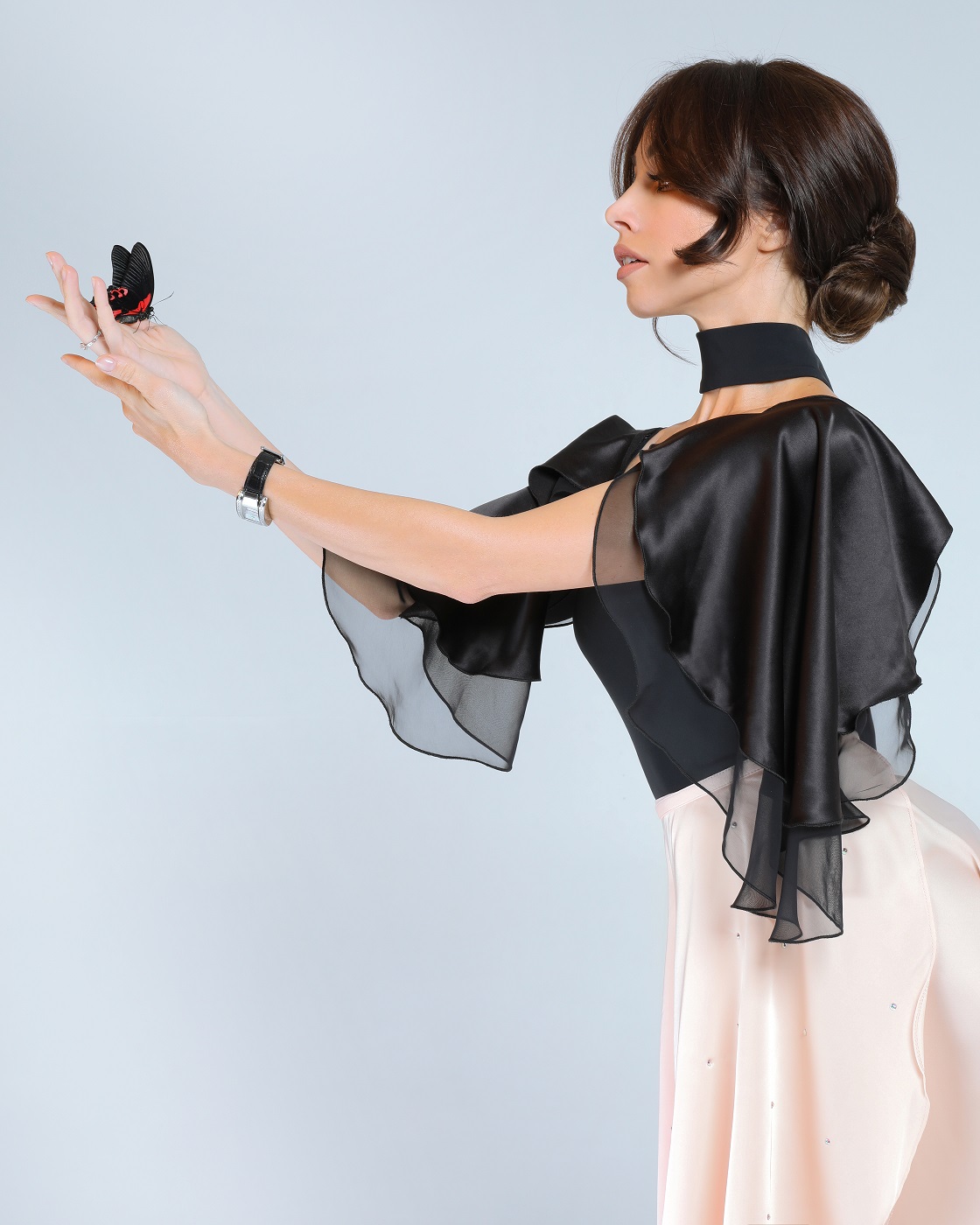 Капсульная коллекция красочная, разнообразная, словно юбки создавались под разные характеры балетных партий. Уникальность изящных вещей состоит в крое, который позволяет юбкам парить и словно дотанцовывать движения артиста, продолжая лететь в воздухе, словно крылья бабочки.