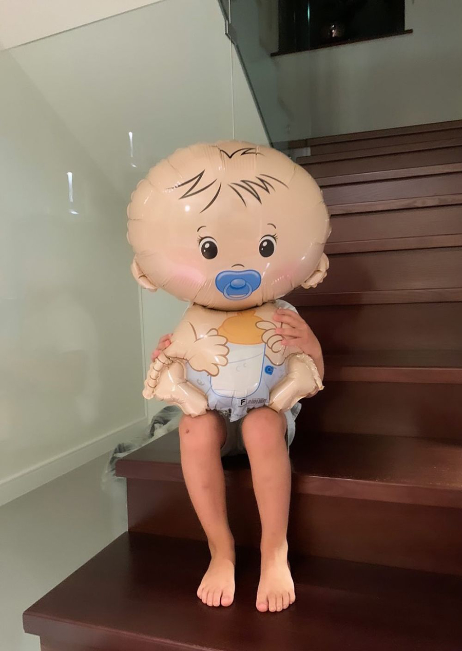 Забирать маму и братика приехал четырехлетний Иван с большим букетом. А загородный дом Юрий декорировал (с помощью профессионалов) воздушными шарами.