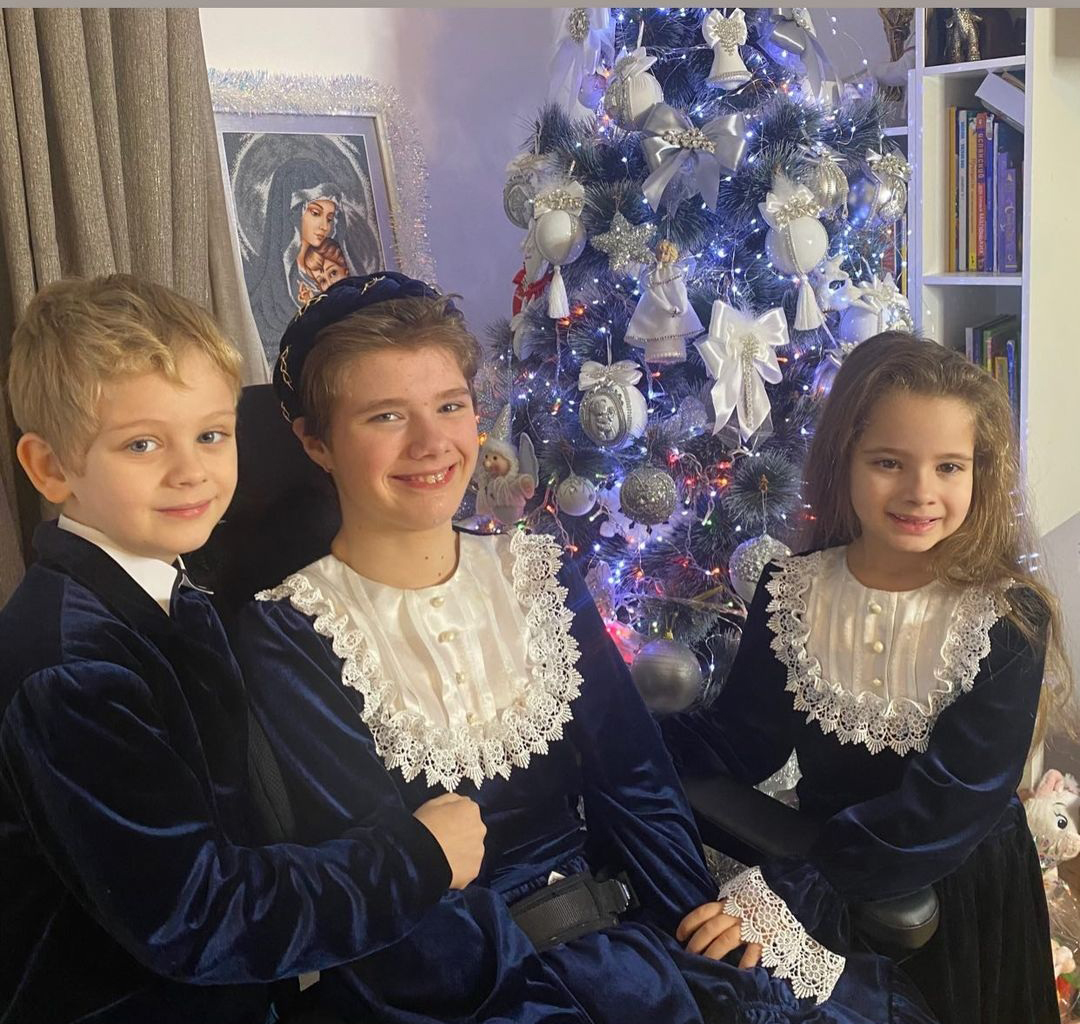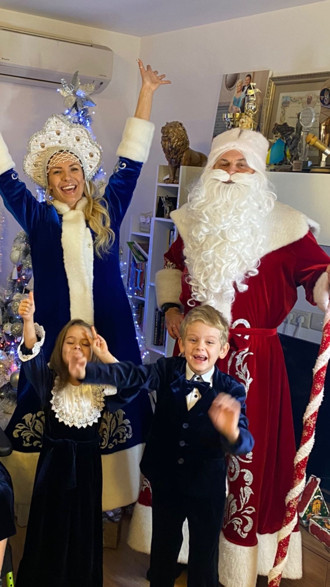 Якщо молодші діти часто з’являються у соцмережах мами, то Олена не любить публічності. Проте в переддень Нового 2023 року зробила виняток – позувала із зірковою матір’ю та молодшим братиком і сестричкою для спільних світлин. Їх Катерина Бужинська показала у сторіс із підписом “Мамині янголята”.