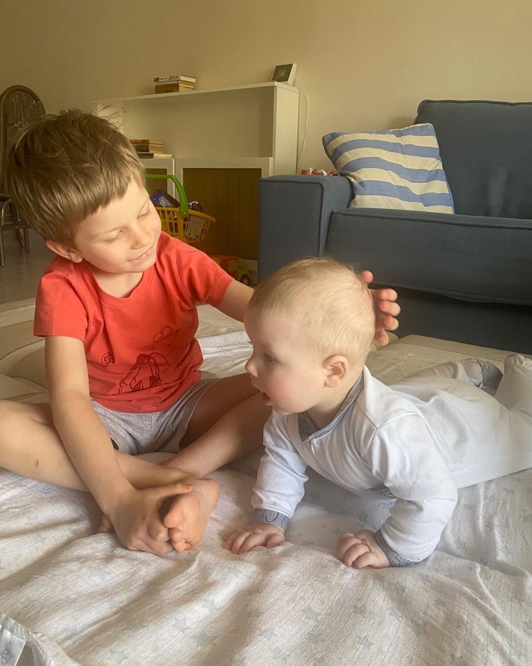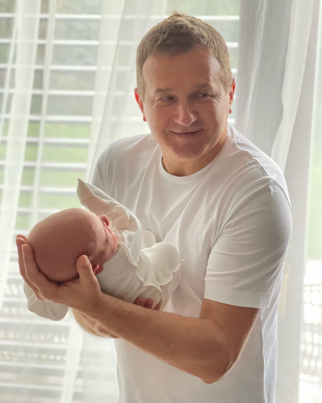 “Сьогодні нашому молодшому синочку Данилу 1 рочок!! Ще вчора наша мамуся на Яблуневий Спас народила нашого хлопчика, а сьогодні він уже каже “дай”,”на”,”ням”, “мама”‘ і “тятя” і швидше за всіх на світі повзає на колінцях по дому”, – тішиться Юрій в “Інстаграмі” і показує фото Данила і його старшого братика Івасика.