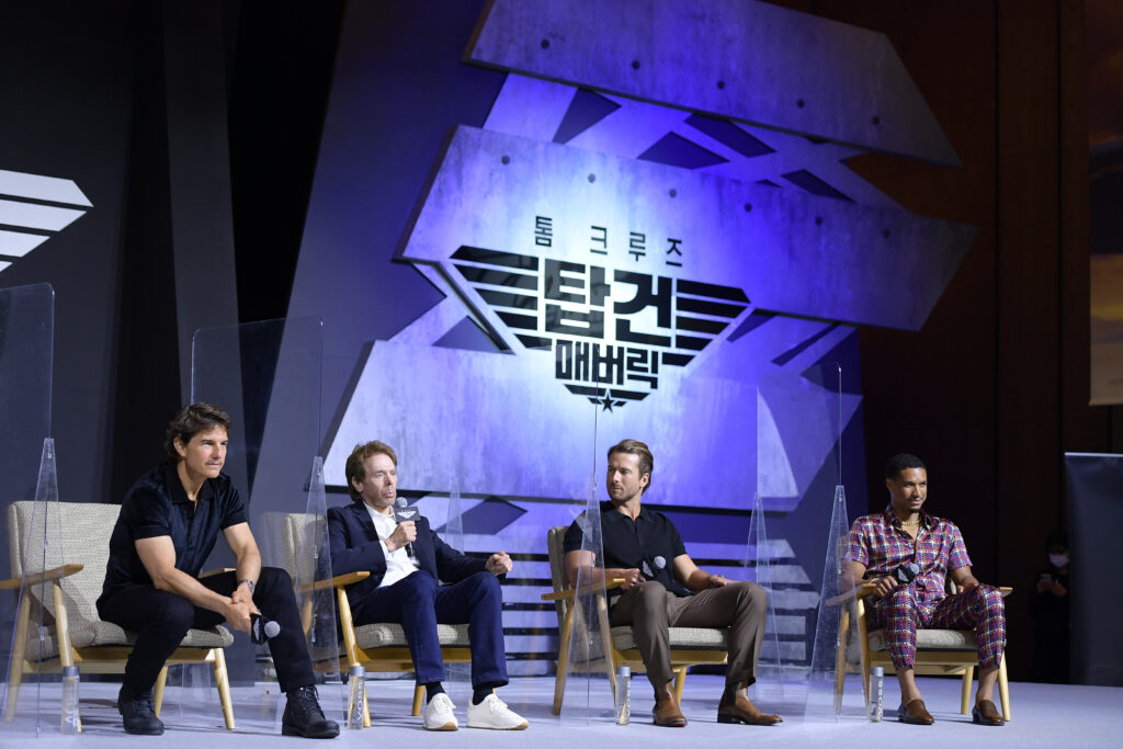 Том Круз, Джеррі Брукгаймер, Глен Пауелл, Грег Тарзан Девис © The Chosunilbo JNS/Imazins via Getty Images