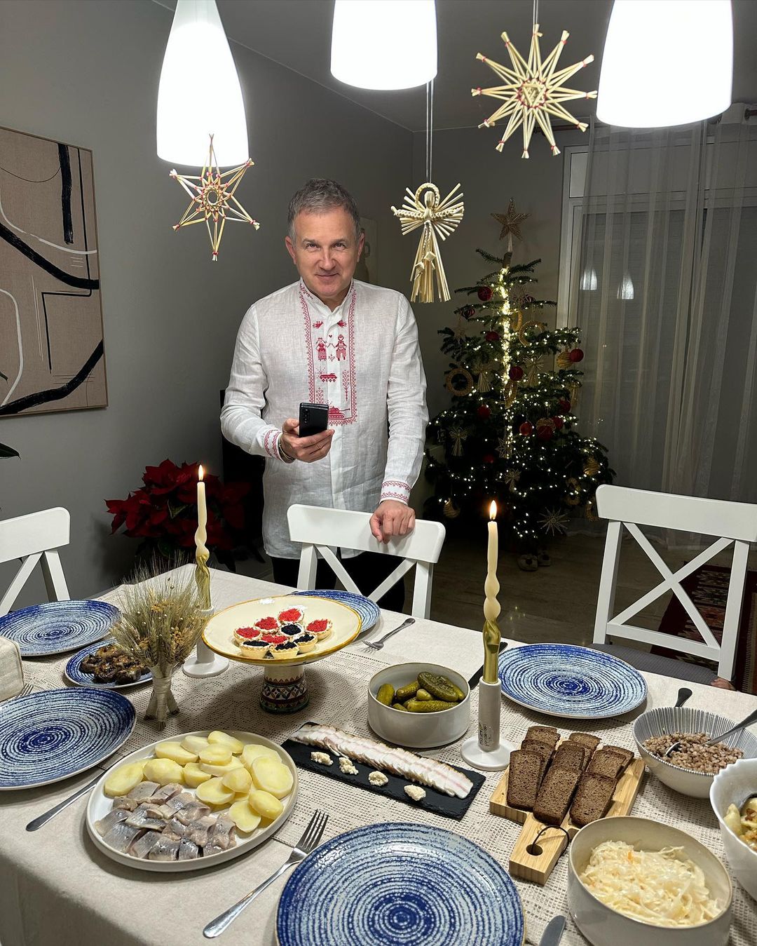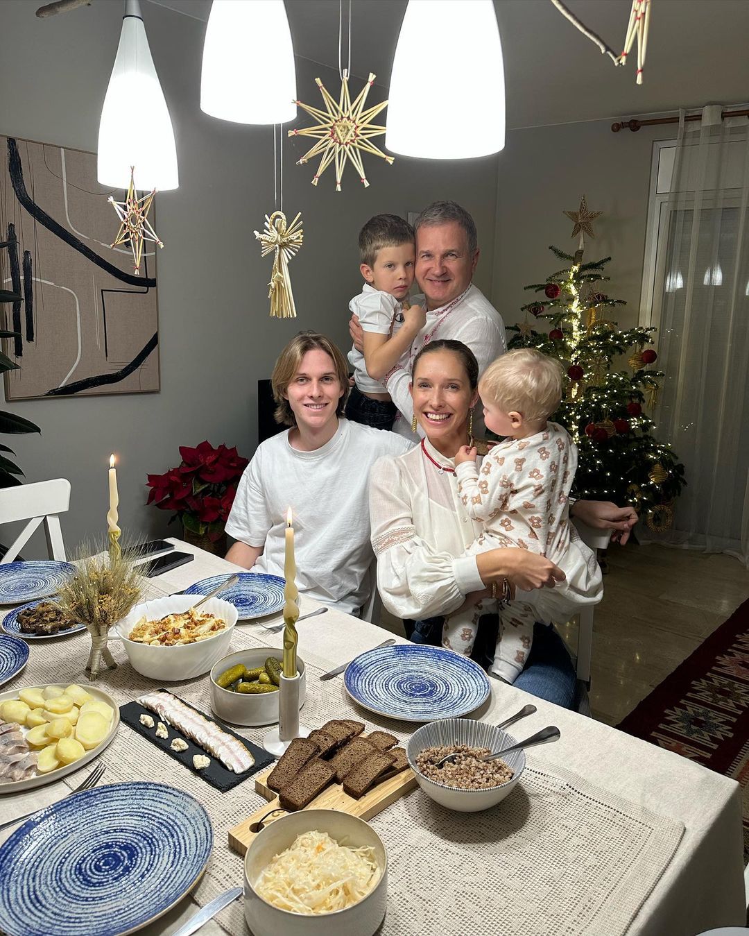 Цьогоріч вони зустрілися за святковим столом разом із двома спільними синами, Іваном та Данилом, і старшим сином Каті від першого шлюбу, Іллею. Хлопці – у зручних футболках і боді, батьки – у вишуканих вишиванках.